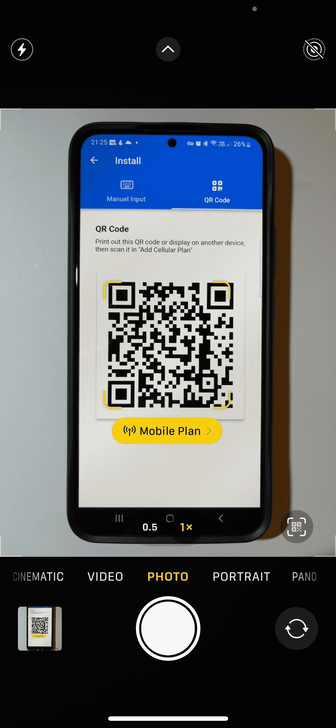 - Open the Camera app and point your phone at the QR code so the phone can see the full box.