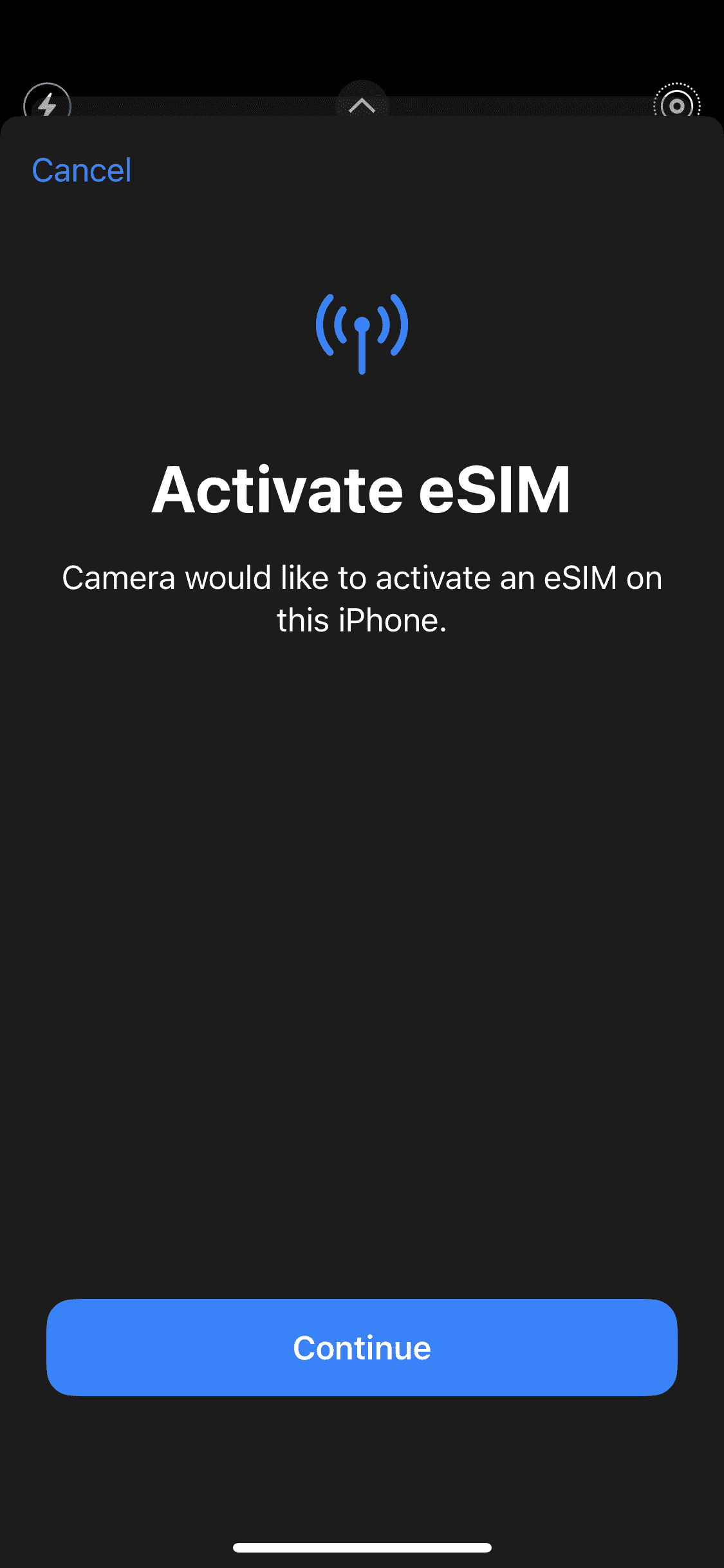- Tap Continue, at the bottom of the screen to activate the eSIM.